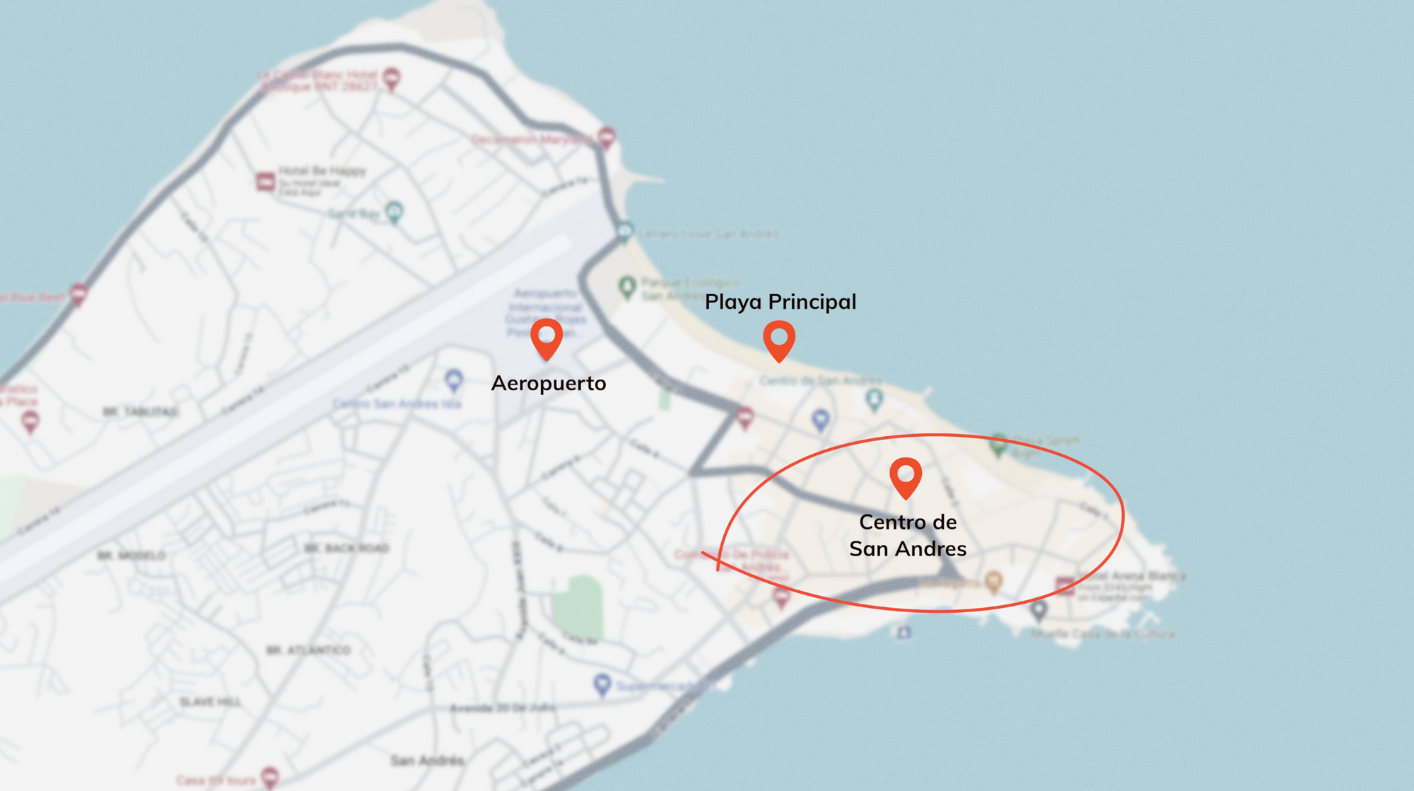 Como ven en el mapa, El aeropuerto queda bastante cerca del centro de San Andres. Asi que dependiendo de donde estes hospedado, podrías ir caminando.